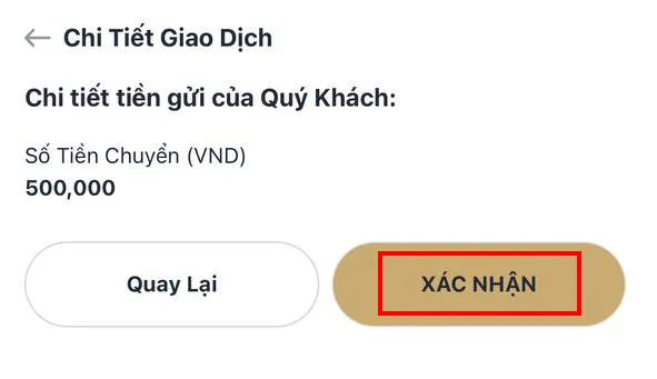 - Sau đó, nhấn nút NỘP và tiếp tục nhấn XÁC NHẬN tại màn hình Chi Tiết Giao Dịch để hệ thống khởi tạo mã QR.